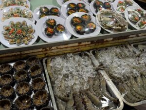 - 新鮮現撈海鮮:您可以直接從攤位前的水族箱挑选鮮魚或大蝦,請老闆現場烹調,新鮮度絕對沒問題。